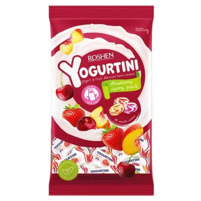 آبنبات ماست میوه ای در سه طعم مختلف یوگورتینی روشن بسته بندی یک کیلوگرمی دارد و داخل هر بسته از آن با 180 آبنبات از طعم های توت فرنگی، گیلاس و هلو پر شده است. رنگ بسته بندی محصول نیز نشاط آور و به رنگ صورتی می باشد. آبنبات ها تهیه شده از ماست تازه هستند همانطور که روی بسته بندی هم نوشته شده made with fresh yogurt.