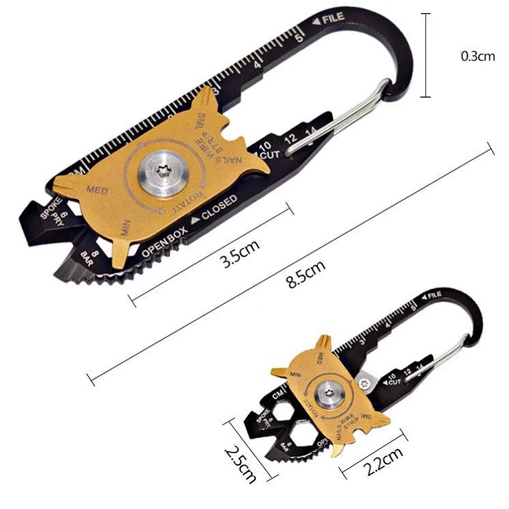 ابعاد : 8x2.7x1 سانتیمتر وزن : 40 گرم طول بلندترین تیغه : 50 میلی متر نوع تیغه : فولادی نوع چاقو : کارتی جنس دسته : فولاد تعداد ابزار همراه : 12 عدد تعداد عملکرد : 12 عدد |