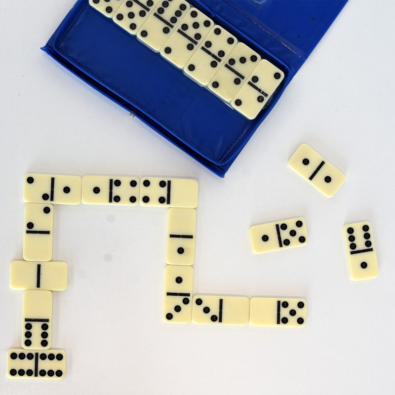 شاید بسیاری از افراد تصور کنند که دومینو فقط یک بازی نمایشی است که در آن با چیدن کاشیهای مستطیلی کوچک کنار هم میتوان اشکال و صحنههای زیبایی را به وجود آورد. اما دومینو فقط در این نوع بازی خلاصه نمیشود و بهوسیله این قطعات مستطیلی کوچک بازیهای دیگری هم میتوان انجام داد. بازی دومینو تشکیل شده از 28 کاشی مستطیل شکل از جنس سنگ(سرامیک)، شبیه به مهرههای تاس که اندازه هر کاشی 5 سانتیمتر است و بهراحتی میتوان تعدادی از آنها را در دست جای داد. بهوسیله این کاشیها و تاکتیک مورد نیاز این بازی میتوان یک بازی دسته جمعی مهیج انجام داد. مدارک تاریخی نشان میدهد که برای اولین بار این بازی دومینو در چین و توسط سلسله سونگ انجام میشد. اما به طور مشخص در طول قرن 18 ایتالیاییها این بازی را انجام میدادند و مشخص نیست که چطور این بازی از چین به ایتالیا آمده و توسعه پیدا کرده است. دومینو از 28 قطعه مستطیلی شکل تشکیل شده است ، که هرکدام از قطعات با یک خط از وسط جدا شده و تبدیل به دو مربع شده است. روی هر مربع نقاطی به تعداد ا تا 9 عدد ترسیم شده است شبیه به یک تاس یا اینکه بدون نقطه است. بازیکنان با قطعات مساوی دومینو، بازی را شروع میکنند. با چیدن یک قطعه دومینو بازی شروع میشود و برای اضافه کردن یک قطعه جدید باید یکی از مربعهای آن را با مربعی در یکی از دو انتهای قطعات چیده شده جفت کرد. یعنی هر دو مربع تعداد یکسانی نقطه داشته باشند. در هر نوبت هر بازیکن یک دومینو به زنجیر اضافه میکند و اگر در قطعاتش آن شماره را نداشت، نوبت را به حریف واگذار میکند و یک دومینو از بانک بر میدارد. در نهایت بازیکنی که زودتر از همه دومینوهایش تمام شود برنده است. بازی دومینو را میتوان بهصورت 2 یا 4 نفره انجام داد و هر دست بازی نیاز به صرف زمان طولانی ندارد و ممکن است با چند حرکت و ظرف مدت چند دقیقه به پایان برسد. این بازی مناسب برای همهی افراد 6 سال به بالا است و میتواند هیجان زیادی را در جمعهای خانوادگی و دوستانه ایجاد کند.