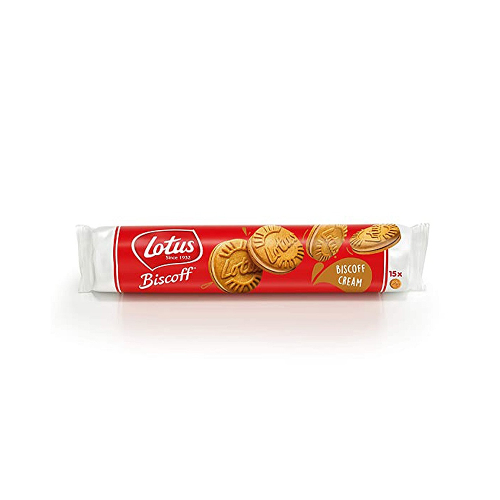 ترکیبات: شکر، آرد گندم، روغن های گیاهی (حاوی یک یا چند روغن سویا ، روغن آفتابگردان ، روغن کانولا ، روغن پالم)، شربت قند قهوه ای، بی کربنات سدیم (خمیرمایه)، آرد سویا، لسیتین سویا (امولسیون کننده)، نمک، دارچین بیسکویت کرمدار با کرم بیسکوییتی ساخت کشور: بلژیک وزن: 150 گرم |