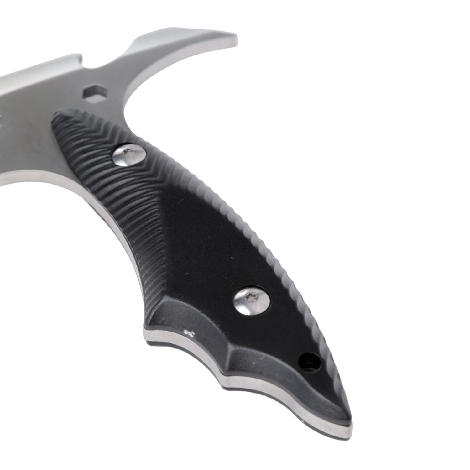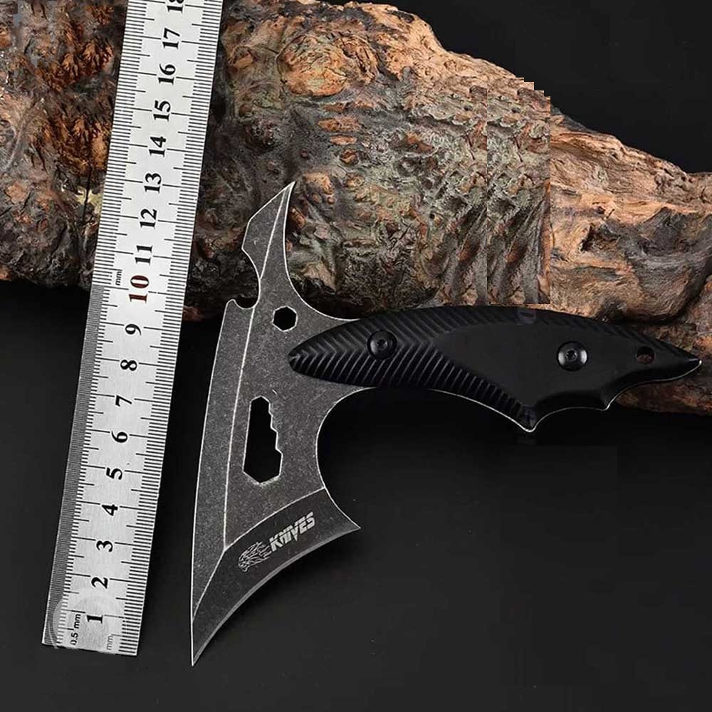 وزن: 217 گرم میزان سختی: 58HRC طول تیغه:5.8 سانتی متر عرض تیغه: 4.4 سانتی متر ضخامت تیغه:4.4 سانتی متر طول دستگیره:11سانتی متر طول کامل تبر: 13.4 سانتی متر جنس بدنه: فولاد ضد زنگ 5cr13mov جنس دسته تبر: فولاد،پلاستیک فشرده مناسب برای کوهنوردی ، طبیعتگردی و کمپینگ |
