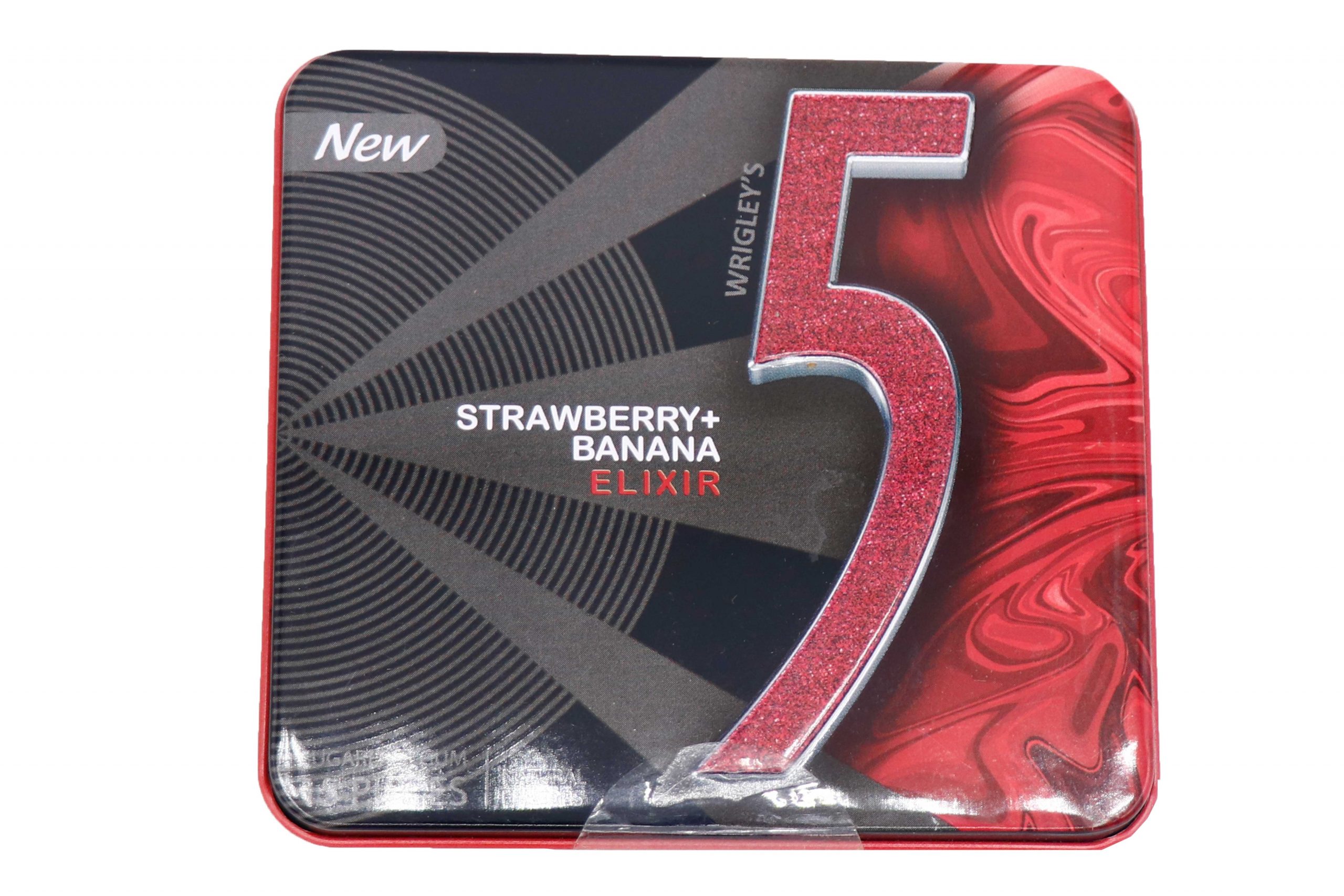 FIVE آدامس بدون قند جعبه فلزی فایو با طعم توت فرنگی و موز