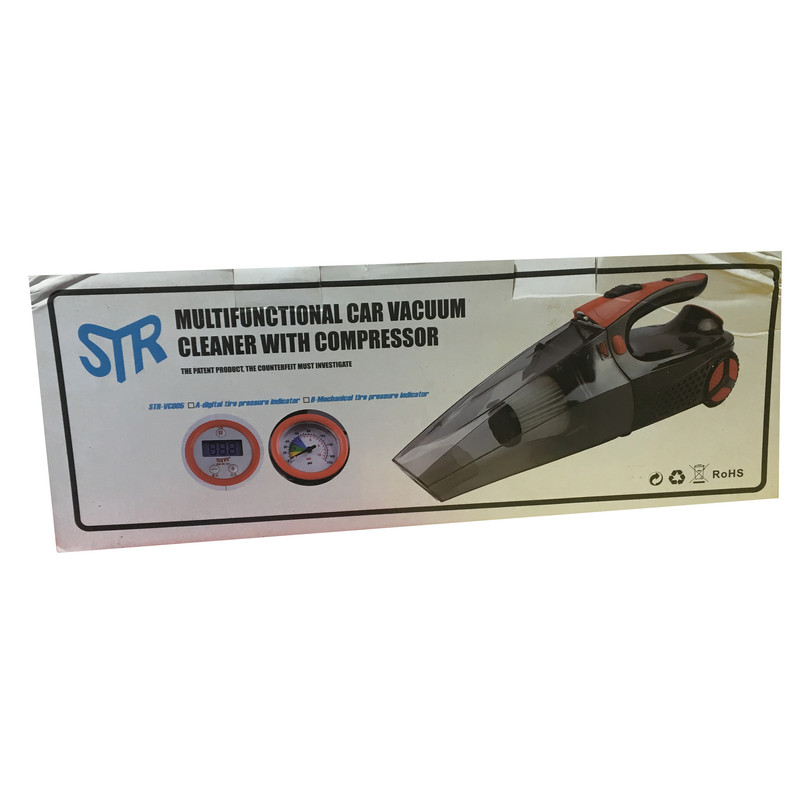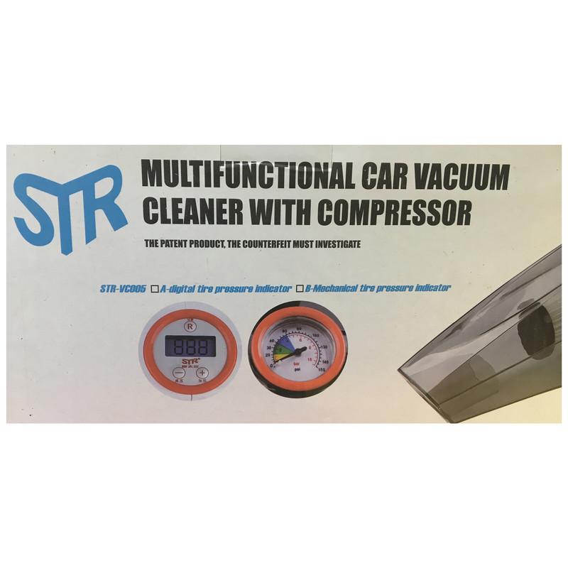 جنس بدنه جارو فندکی و کمپرسور اس تی آر STR-VC005 از پلاستیک نشکن و محکم است و همین امر نیز باعث شده است تا در برابر ضربه مقاوم باشد. جارو فندکی خودرو در واقع دو کاره می باشد هم می توان به صورت جارو شارژی برای تمیز کردن خودرو استفاده کرد و هم می توان به عنوان پمپ باد برای تنظیم باد لاستیک خودرو استفاده نمود. جارو شارژی بسیار زیبا طراحی شده است دارای فیلتر قابل شستشو می باشد و با هر بار استفاده می توان بدون نگرانی آن را شستشو داد، همچنین دارای سری قابل تعویض می باشد. این جارو شارژی بدون پاکت می باشد و توانایی جذب مایعات را ندارد. پمپ باد آن نیز دارای درجه نمایشگر میزان باد بر روی دستگاه می باشد، از آنجا که دارای نازل جداگانه می باشد می توان برای بار کردن توپ، استخر بادی، موتور و ماشین نیز از آن استفاده کرد.