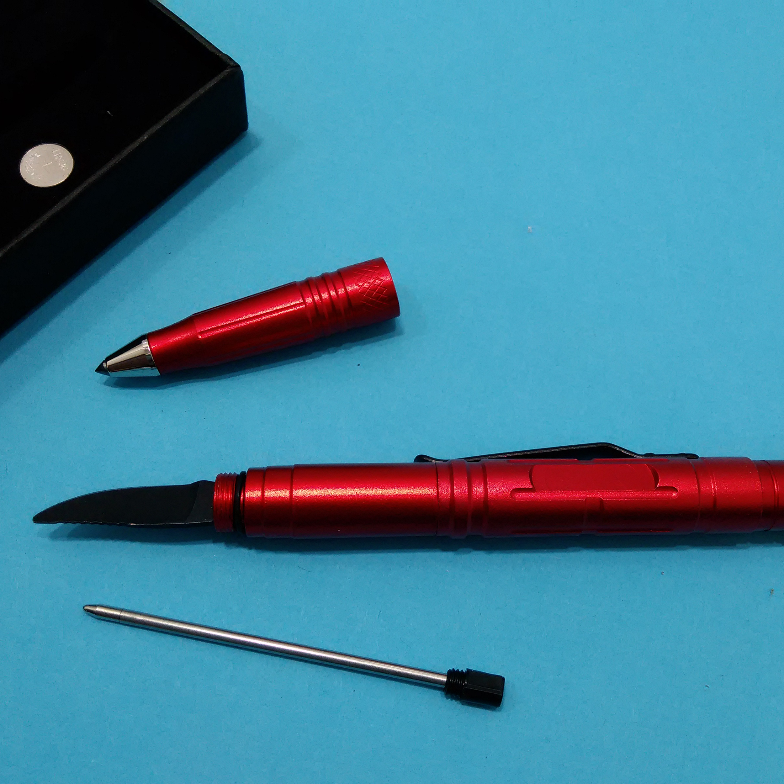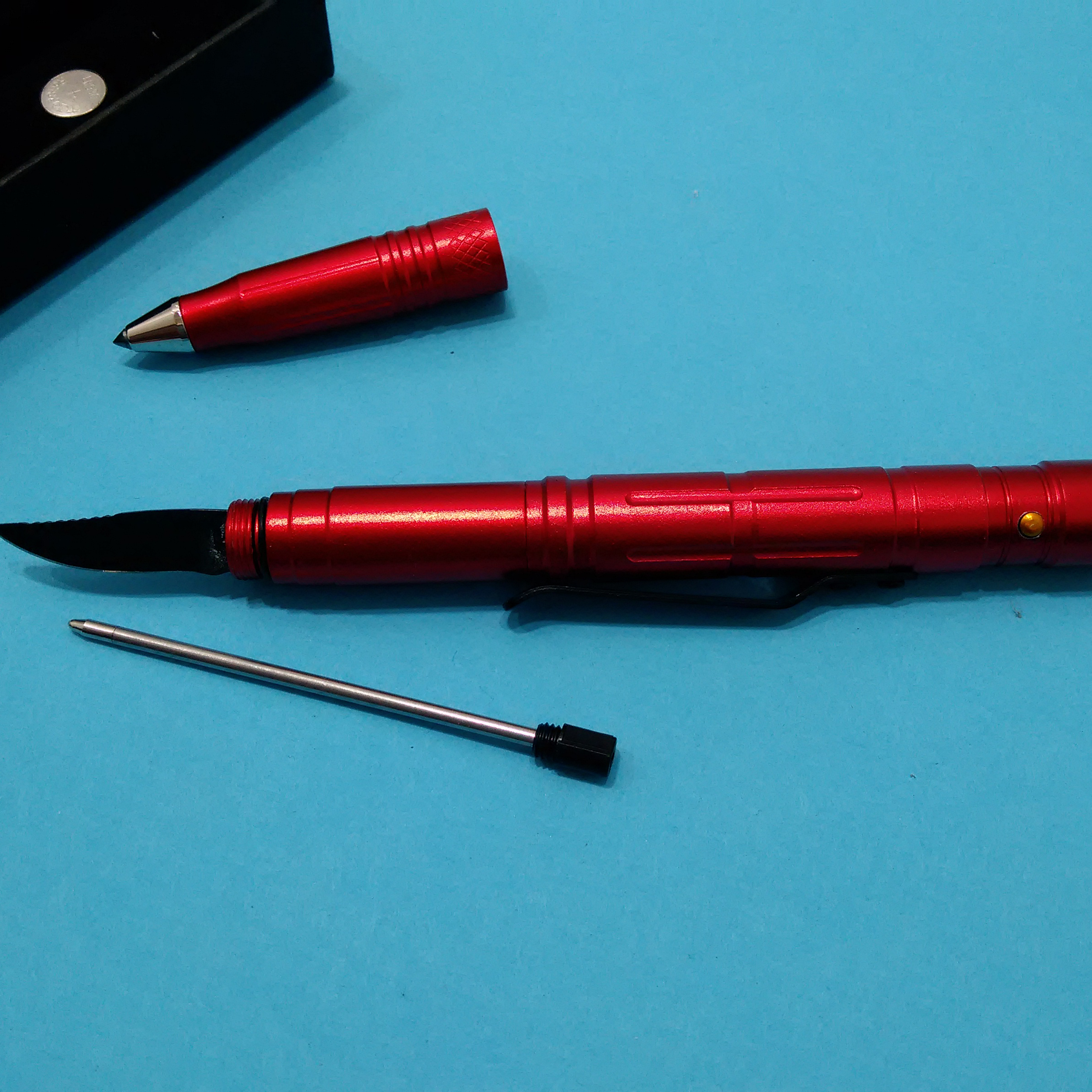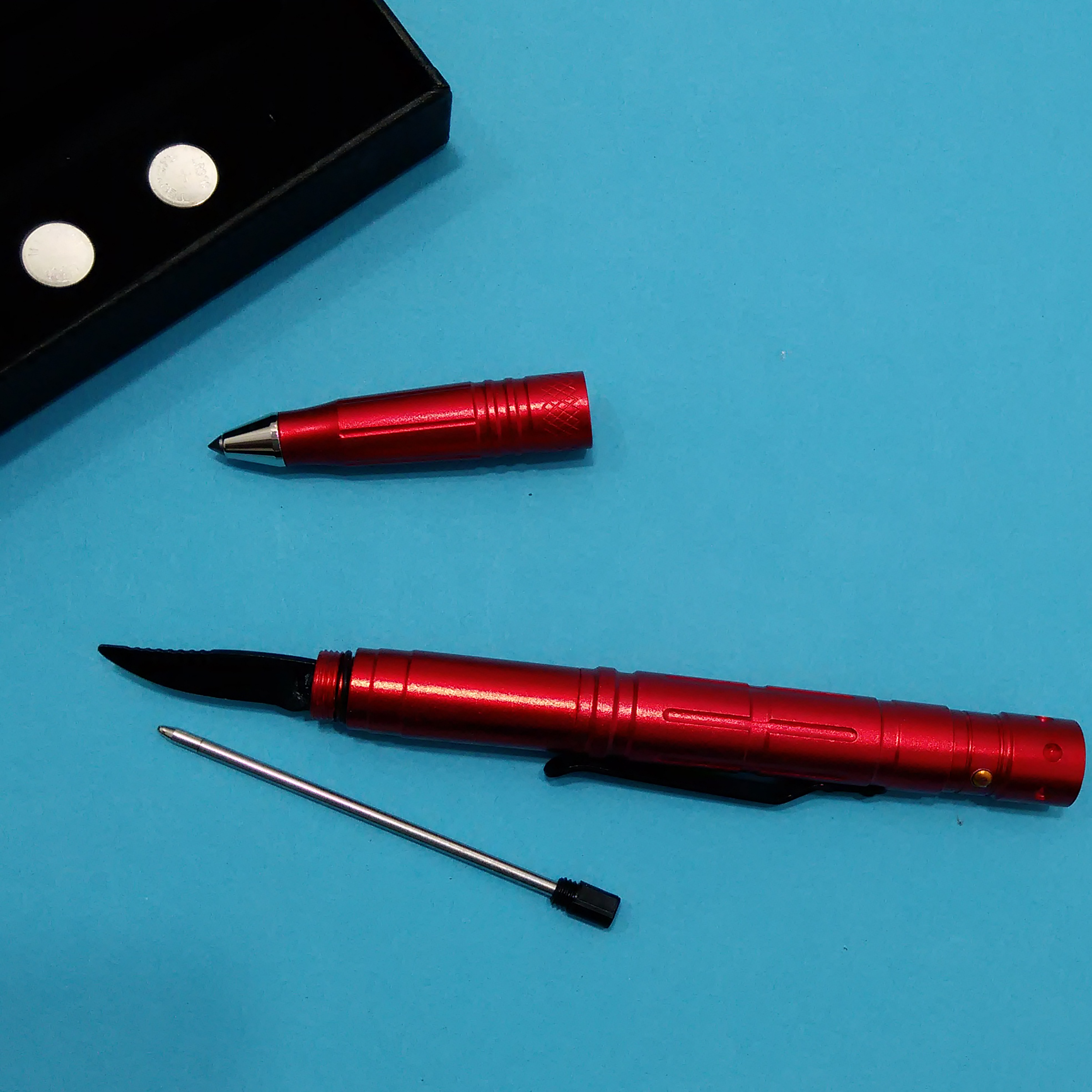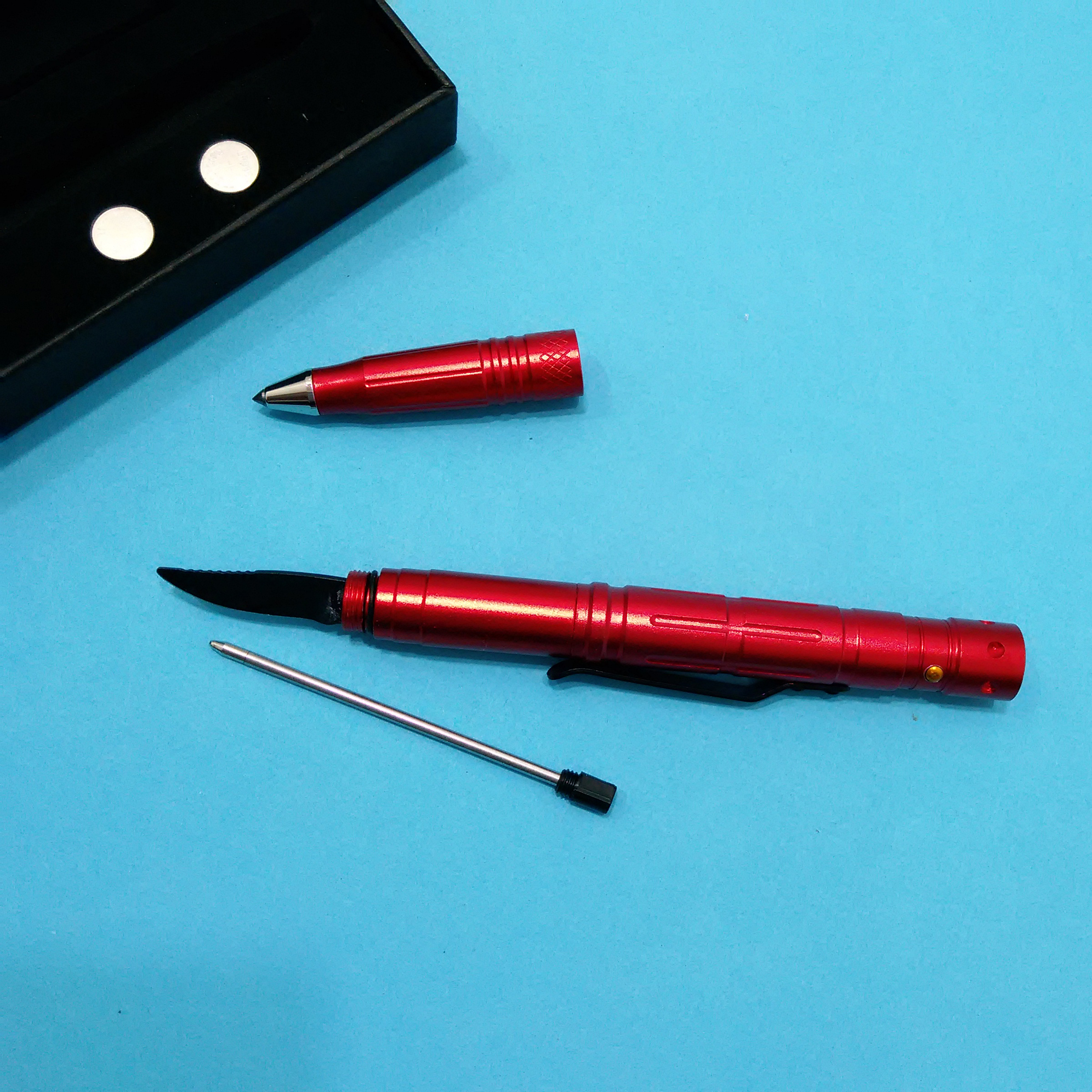 ابعاد: 16*1.6*1.2 سانتی متر ابزار چندکاره تاکتیکال: خودکار چراغ قوه شیشه شکن |