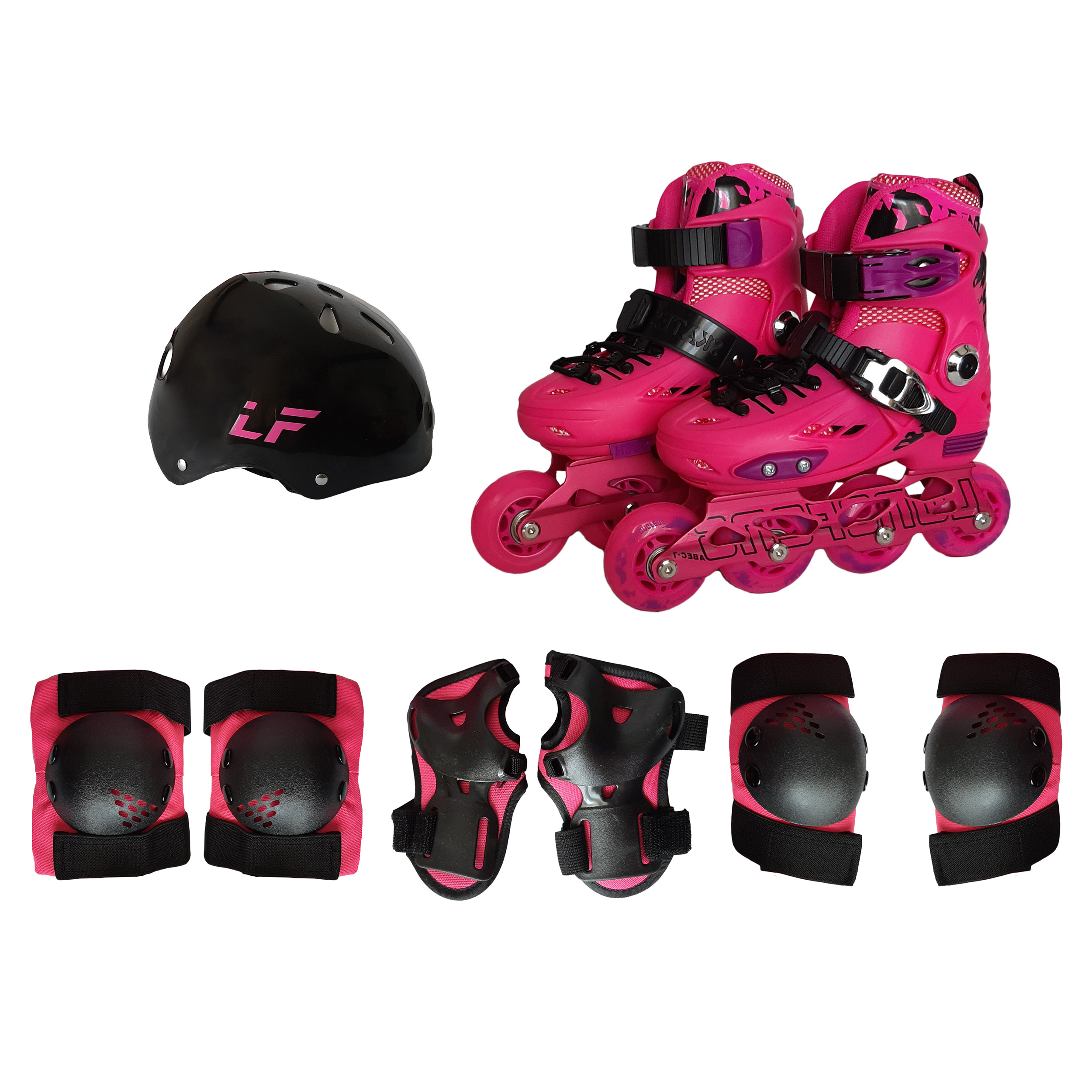 وزن هر اسکیت: 1100 گرم اندازه ساق: 190 میلیمتر قابل تنظیم: نوع بست مچ ریلی ضامندار |