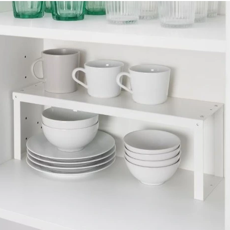 روی قفسه قرار دهید تا فضای بیشتری برای نگهداری لیوان ها ، کاسه ها و شیشه های ادویه بدست آورید. مشاهده و دسترسی به محتوای کابینت را آسان می کند. با استفاده از پیچ های موجود می توانید دو یا چند درز قفسه VARIERA را به یکدیگر متصل کنید. با قرار دادن قسمت قفسه کم عمق در بالای درب عمیق تر قفسه ، یک نمای کلی خوب در داخل کابینت خود ایجاد کنید. از درز قفسه می توان در هر آشپزخانه ، قدیمی یا جدید استفاده کرد تا فضای ذخیره سازی بیشتری ایجاد کند.
