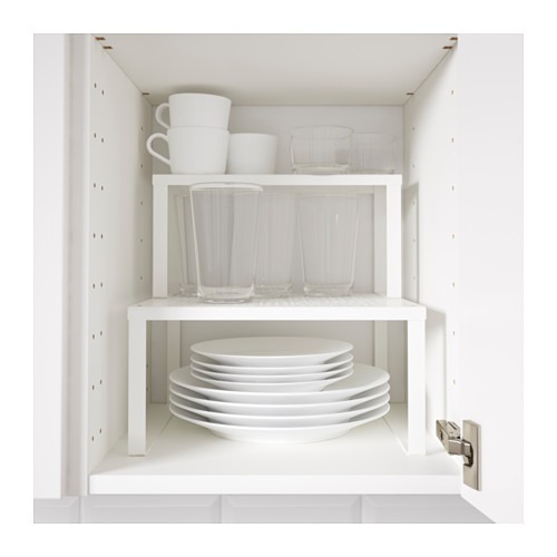 روی قفسه قرار دهید تا فضای بیشتری برای نگهداری لیوان ها ، کاسه ها و شیشه های ادویه بدست آورید. مشاهده و دسترسی به محتوای کابینت را آسان می کند. با استفاده از پیچ های موجود می توانید دو یا چند درز قفسه VARIERA را به یکدیگر متصل کنید. با قرار دادن قسمت قفسه کم عمق در بالای درب عمیق تر قفسه ، یک نمای کلی خوب در داخل کابینت خود ایجاد کنید. از درز قفسه می توان در هر آشپزخانه ، قدیمی یا جدید استفاده کرد تا فضای ذخیره سازی بیشتری ایجاد کند.