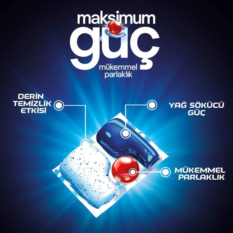 این قرص دارای سه رنگ قرمز، سفید و آبی می باشد که هریک از این رنگ ها در عملکرد شست و شو کاربر خاصی دارد.این قرص با رایحه لیمو می باشد لایه قرمز و کوچکی که در قرص مدل Quantum Max Hepsi 1 Arada فینیش وجود دارد هنگام شست و شوی ظروف به جلادهنگی بیشتر کمک خواهد کرد. لایه سفید به کار رفته در این قرص نیز از فرمولاسیون ویژه ای برخوردار است. به این صورت که در هنگام شست و شوی ظرف ها با تولید اکسیژن بیشتر کمک می کند تا چربی موجود روی ظرف حل شده و شست شوی آن ها به راحتی صورت گیرد. 30 درصد از این قرص برای شست و شو و مابقی آن برای آبکشی مورد استفاده قرار می گیرد. در قرص Finish مدل Quantum Max Hepsi 1 Arada یک لایه زرد هم وجود دارد که به شست و شوی بهتر ظروف کمک خواهد کرد. این نوع از قرص ها قدرت تمیز کنندگی فوق العاده ای دارند و کمک می کنند ظروف مختلف بخصوص ظرف های بلور و شیشه ای بدون هیچ نوع لکه ای شسته شوند و بدرخشند. از دیگر ویژگی های قرص ماشین ظرفشویی فینیش می توان به جلوگیری از ایجاد جرم در ماشین ظرفشویی و محافظت از فیلتر دستگاه اشاره کرد. همچنین قرص های فینیش در دمای پایین آب نیز اثرگذاری بالایی داشته و پس از شست و شو نیز به خشک شدن سریع ظرف ها کمک می کند. قرص های فینیش در بسته بندی هایی با تعداد مختلف تولید شده اند که می توانید با توجه به میزان نیاز خود خریداری کنید.