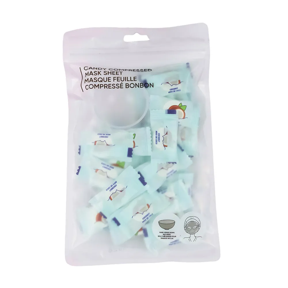 ماسک فشرده Candy شامل 35 ورقه ماسک فشرده و بسته بندی شده جداگانه و یک کاسه ماسک دستی است که هر آنچه را که برای نرم کردن صورت در خانه است ارائه می دهد. ساخته شده از پارچه نبافته، کاملاً روی پوست می چسبد. |