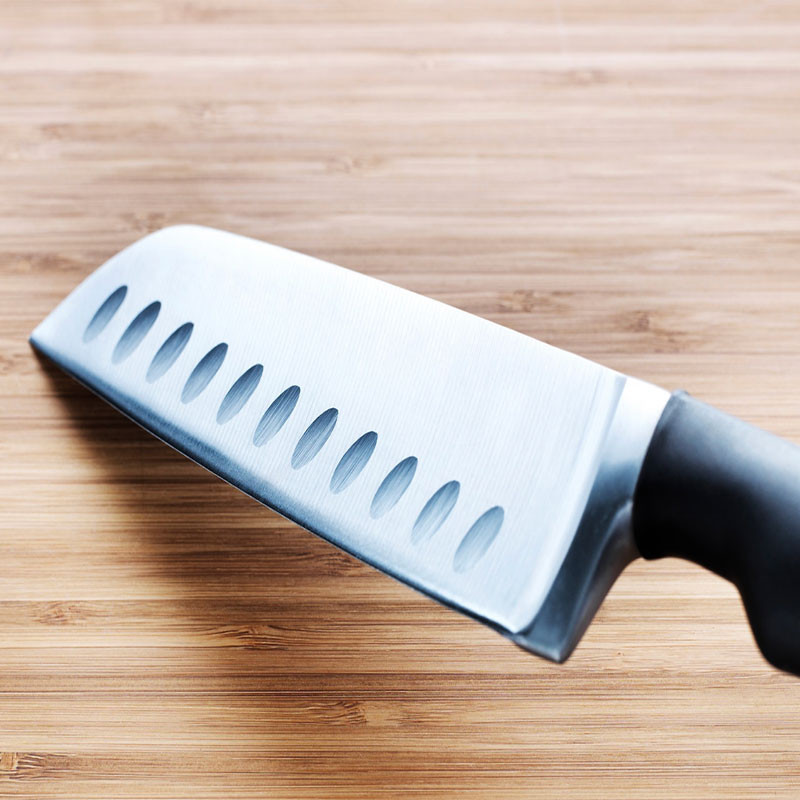 ابعاد: 30x6x3 سانتیمتر وزن: 210 گرم جنس تیغه: استیل سایر توضیحات : طول تیغه: 16 سانتی متر - این چاقو مخصوص سبزیجات است - دارای شیارهایی بر روی تیغه که هنگام قطعه کردن سبزیجات، هوای محبوس شده، از چسبیدن قطعات به چاقو جلوگیری می کند - تیغه از ترکیب مولیبدن و وانادیوم ساخته شده است که سبب میشود برای زمان بیشتری تیز بماند - طراحی دسته به گونه ایست که در دست راحت قرار می گیرد |