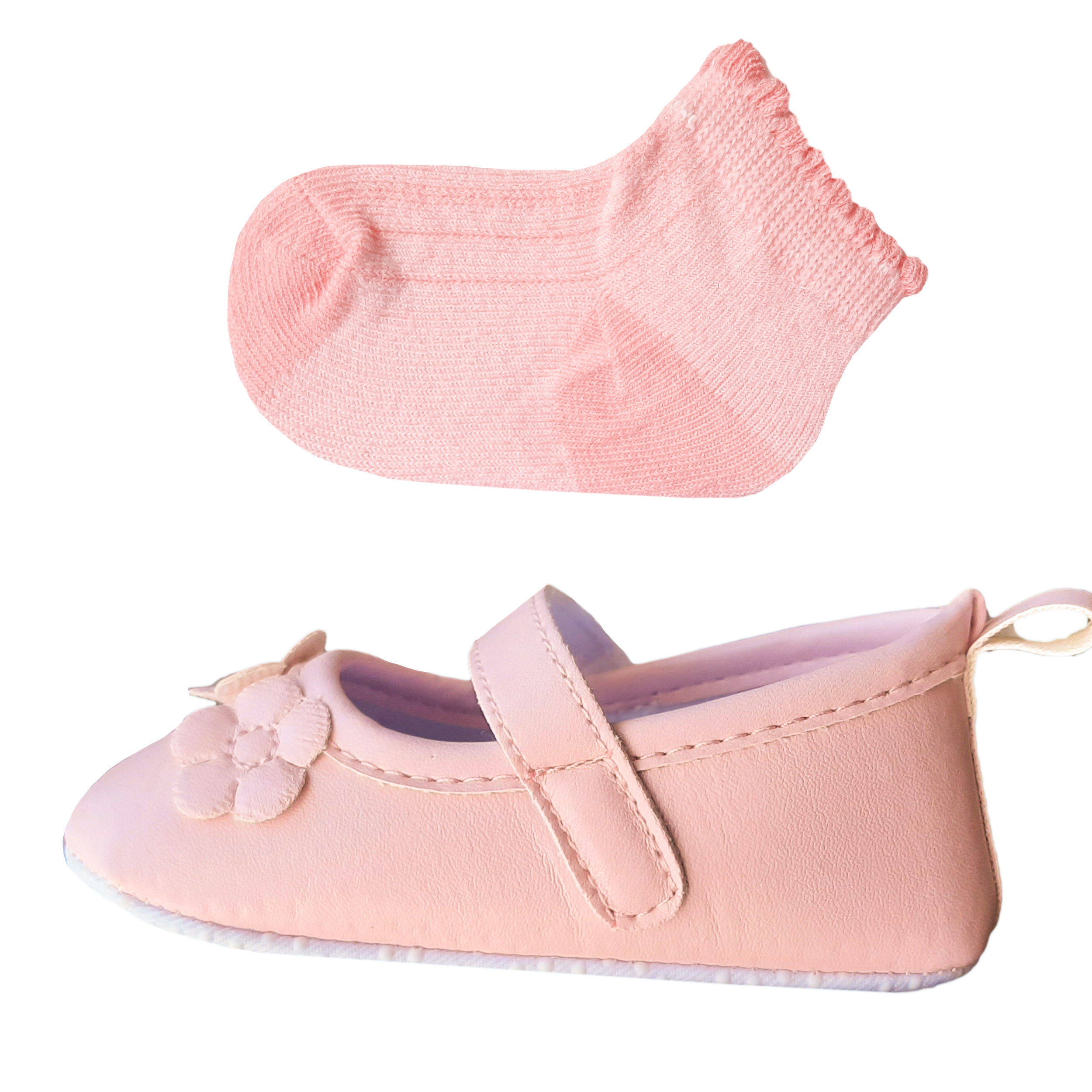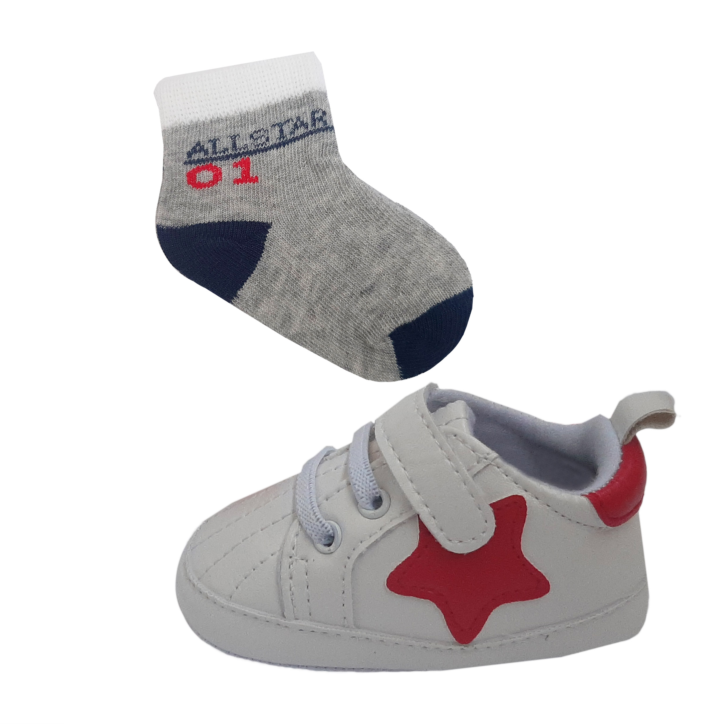 ست کفش و جوراب نوزادی لاندنی مدل SO-400 به همراه جوراب