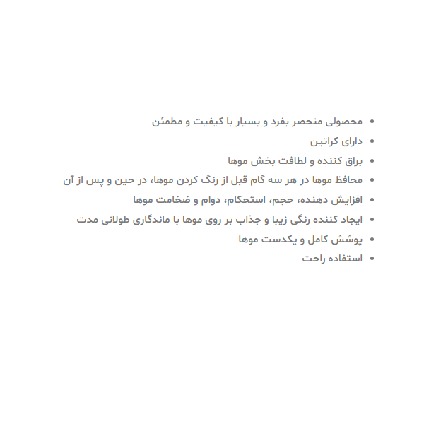 کرم رنگ مو: حاوی پروکراتین که در حین رنگ کردن موها را تقویت می‌کند.