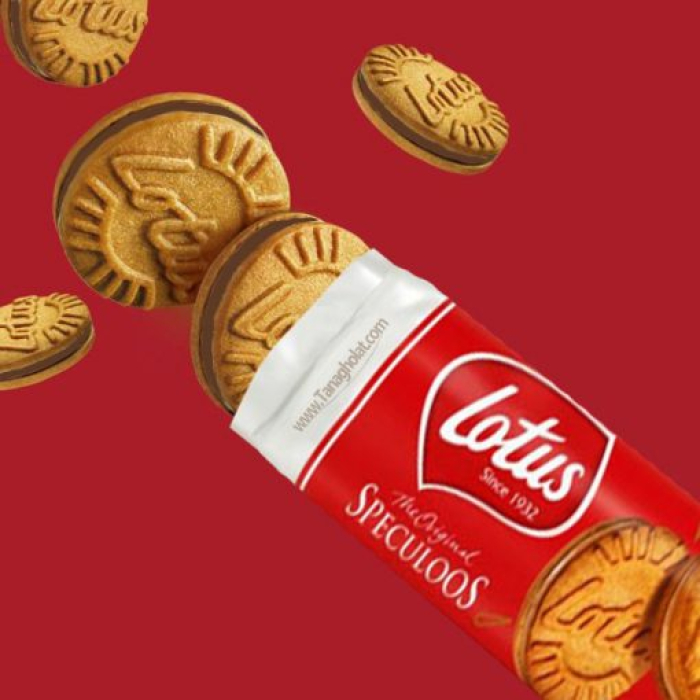 بیسکوییت 1 کیلویی لوتوس از بیسکوییت کاراملیزه شده ی اورجینال، تولید شده است.