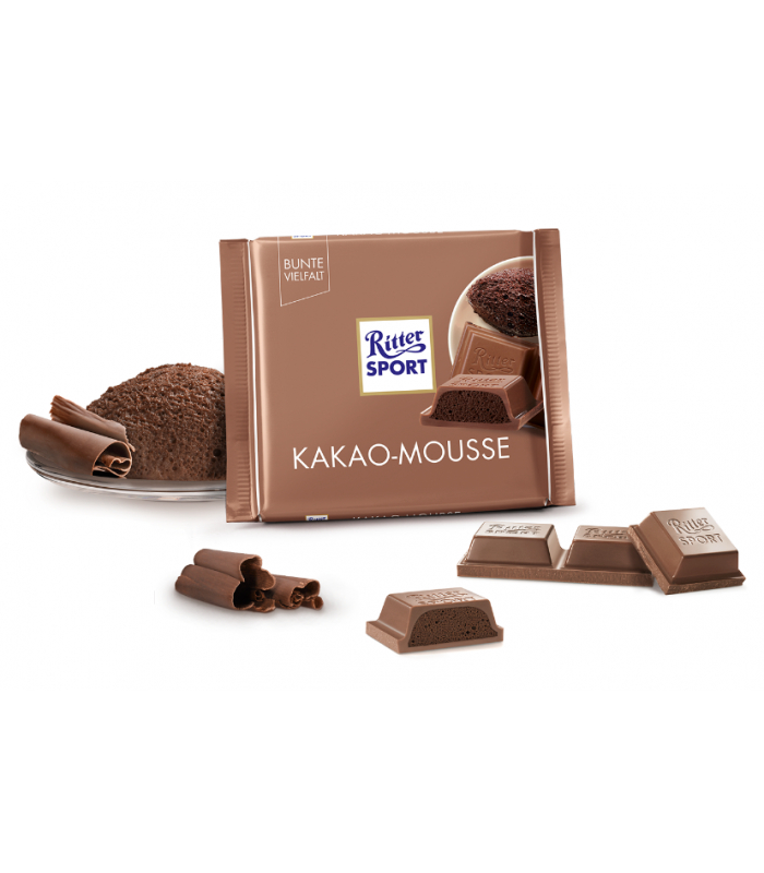 شکلات موس کاکایو ریتر اسپرت حاوی موس بسیار خوشمزه شکلاتی است. شکلات موس کاکایو ریتر اسپرت از قطعه های نسبتا بزرگی تشکیل شده که درون هر قطعه با موس شکلات پر شده است. موس فرآوری شده و طرفداران بسیاری دارد و از عطر و طعم منحصر به فردی برخوردار است